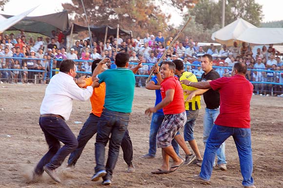 Güreş arenasında boğalar yerine boğa sahipleri güreşmeye başlayınca, devreye çevik kuvvet ekipleri girdi. Olayda, "Derviş" isimli boğanın sahibi Mustafa Barut aldığı sopa darbeleriyle başından yaralandı. Kavga, çevik kuvvet ekiplerinin müdahalesiyle sona ererken, Hasan Dişsiz'in boğası Alex De Souza, rakibi Derviş'i sahadan kaçırarak güreşin galibi oldu