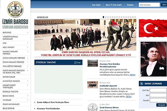 Aydın Özcan başkanlığındaki yeni yönetim, İzmir Barosu'nun internet sitesinden Konak Belediye Başkanı Sema Pekdaş'ın baro başkanlığı yaptığı dönemde kaldırılan Türk Bayrağı'nı yerine koydu